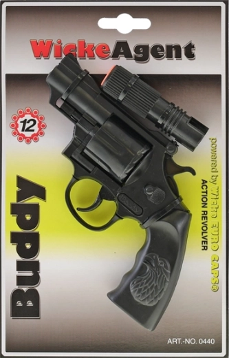Questa pistola a capsule con silenziatore è la scelta ideale per i bambini che amano i giochi d'azione e le missioni di polizia. Grazie alla lunghezza di 23 cm si impugna comodamente e, con le capsule da 8 colpi, offre tanto divertimento con un autentico effetto sonoro.