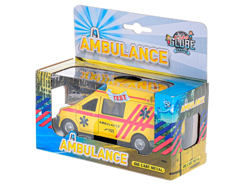 Questa ambulanza in metallo Kids Globe Traffic, ricca di dettagli, offre ai bambini un'esperienza di gioco autentica da soccorritori. Premendo il pulsante sul tetto si attivano le luci lampeggianti e la sirena, rendendo il gioco vivo come in un vero intervento.