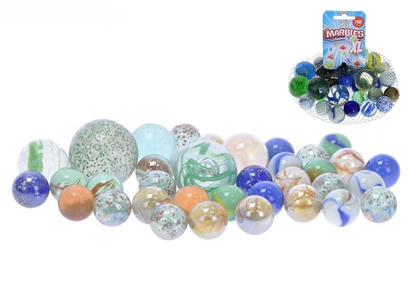 Grazie al peso di 1000 g avrai abbastanza biglie per il gioco individuale e per condividerle con gli amici. Il set include una pratica retina per riporre e trasportare facilmente. Il prodotto è adatto ai bambini dai 3 anni; per un gioco sicuro si raccomanda la supervisione di un adulto.