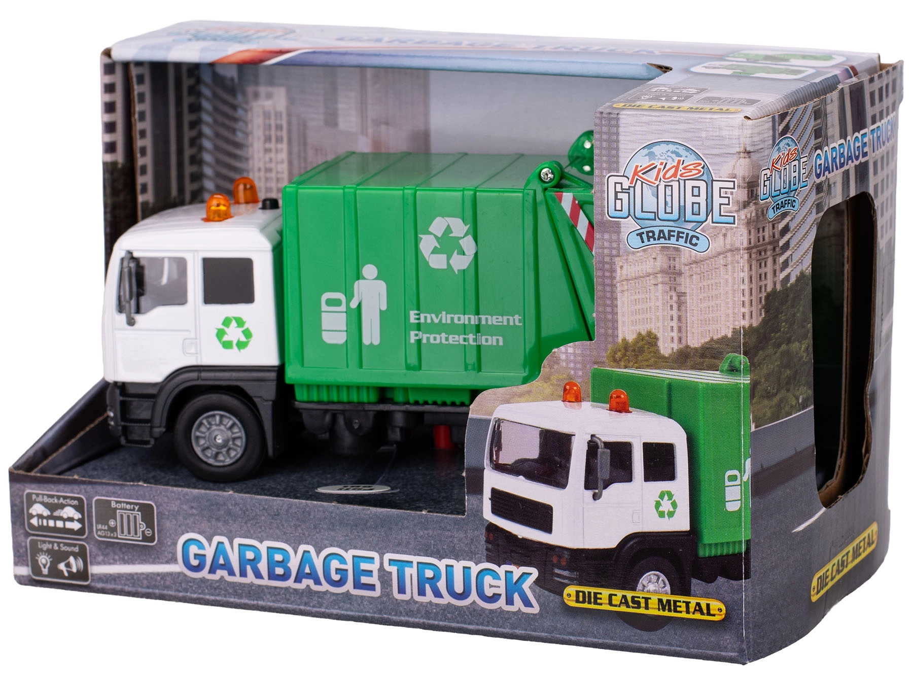 Il realistico camion della spazzatura di Kids Globe Traffic farà felice ogni piccolo autista. Offre retrocarica, effetti luminosi e sonori e elementi in metallo per una maggiore resistenza. Le batterie sono incluse, così i bambini possono giocare subito dopo l’apertura.
