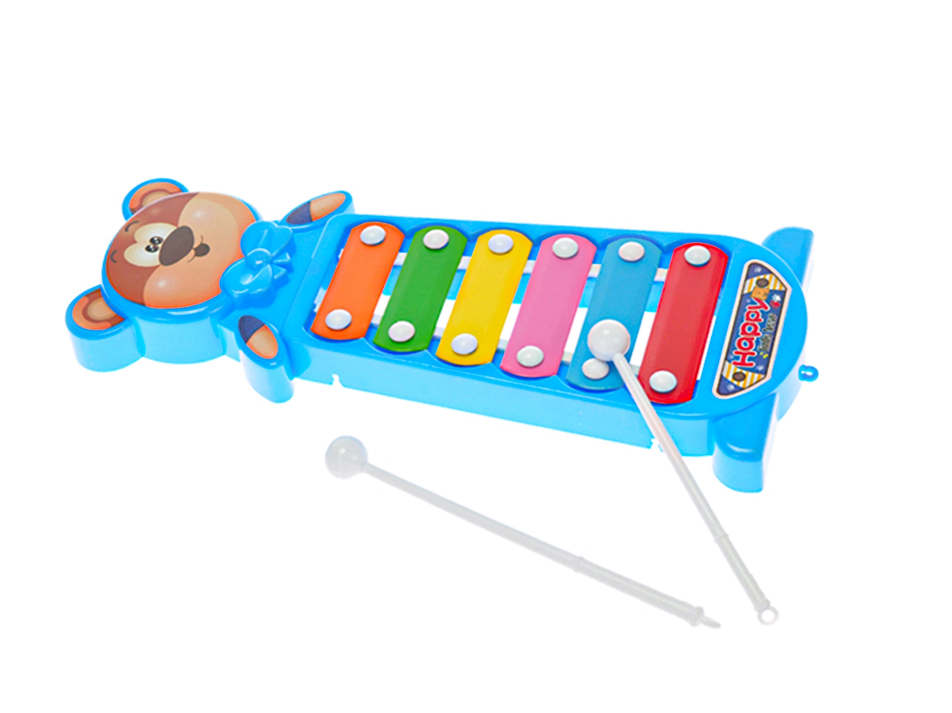 Il dolce xilofono a forma di orsetto farà felici i piccoli musicisti. Offre 6 lamelle metalliche colorate per le prime melodie e 2 bacchette in plastica per suonare con facilità. Grazie alla dimensione compatta di 28 cm è ideale per le mani dei bambini e favorisce lo sviluppo del ritmo, dell’udito e della motricità fine.