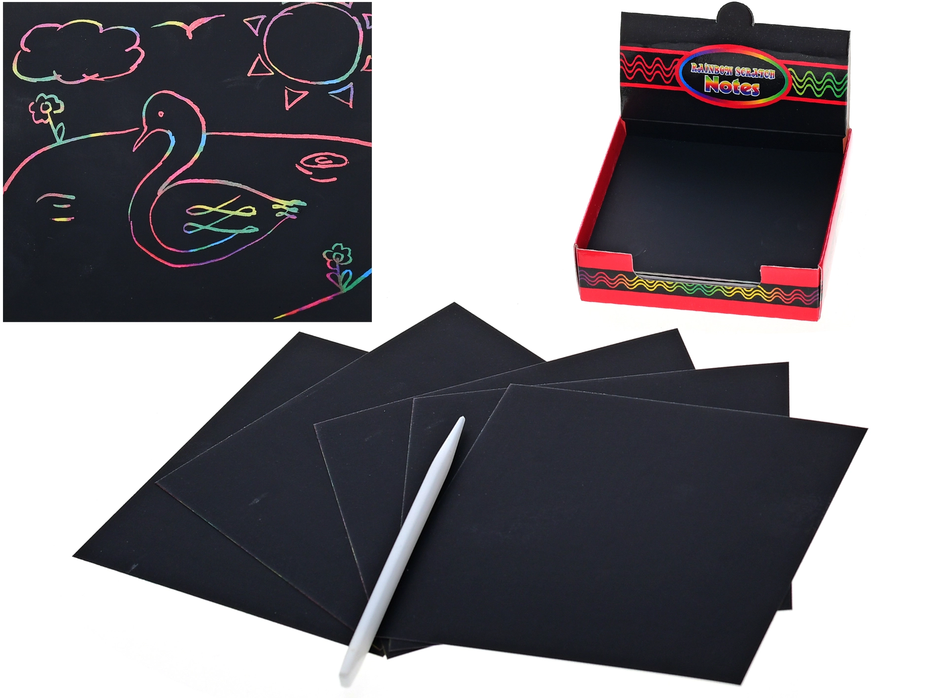 Questo set di cartoncini da grattare è un’ottima scelta per i bambini dai 7 anni in su che amano creare e scoprire nuove tecniche. Sotto lo strato nero si celano colori vivaci che, con la graffiatura progressiva, si trasformano in motivi allegri, scritte e illustrazioni. Grazie alla matita in bambù inclusa, il lavoro è semplice, pulito e sicuro.