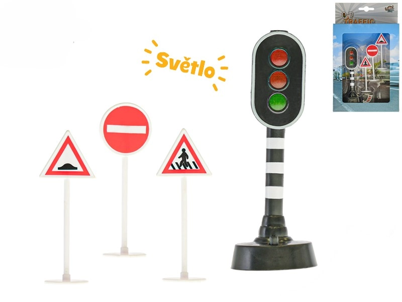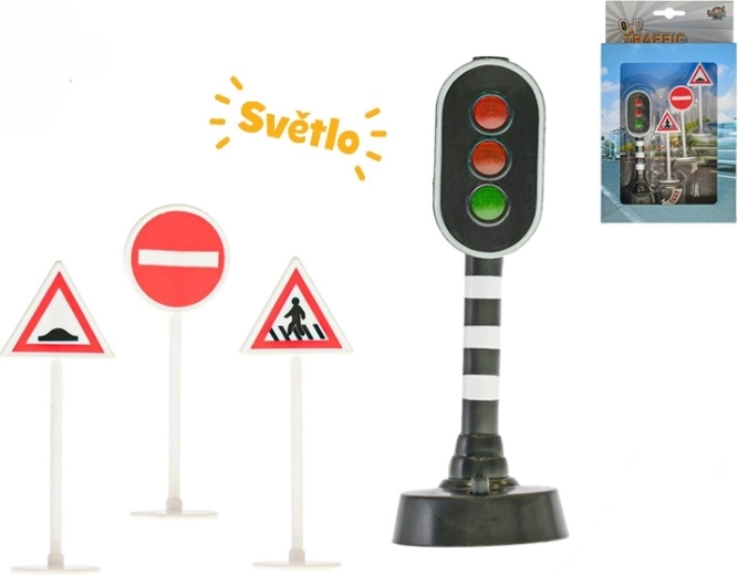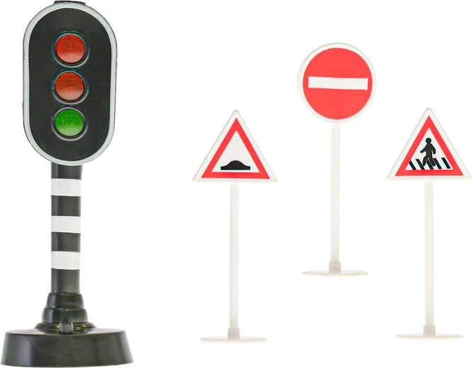 Semaforo realistico alto 13 cm con effetti luminosi, un accessorio perfetto per le macchinine dei bambini. Nella confezione sono inclusi anche 3 segnali stradali, grazie ai quali i bambini possono costruire la propria strada e esercitarsi con le regole del traffico come in una vera città.