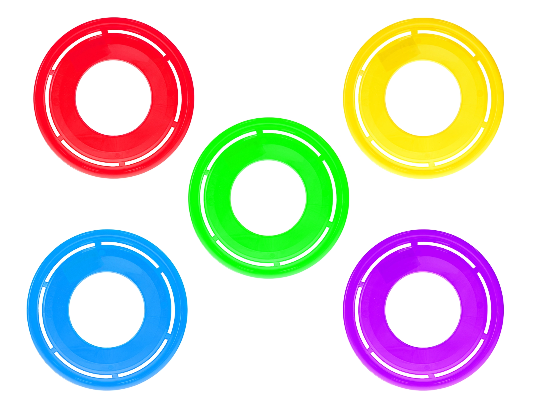 Rosso, blu, verde, rosa e giallo: scegli il tuo colore preferito e distingui facilmente i dischi durante il gioco di gruppo.