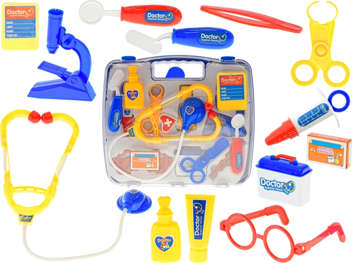 Divertente ed educativa valigetta da dottore per bambini in un pratico cofanetto contenente 14 pezzi di strumenti in plastica, indispensabili per ogni piccolo dottore o dottoressa. Stimola fantasia, gioco di ruolo e motricità fine ed è ideale per l’ambulatorio domestico e per giocare con gli amici.