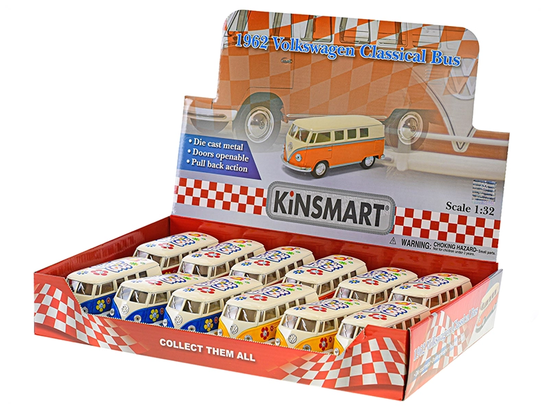 Un classico che non stanca mai. Il Kinsmart Volkswagen Classical Bus 1962 in scala 1:32 porta il design leggendario in 13 cm di lunghezza con dettagli realistici di carrozzeria e interni. Grazie al meccanismo a retrocarica, dopo essere stato tirato indietro parte in avanti e diverte sia i piccoli piloti che gli appassionati collezionisti di veicoli storici.