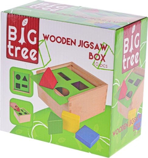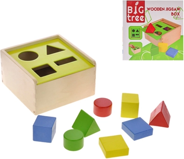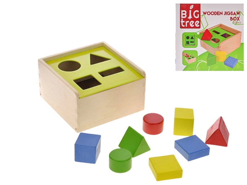 Scoprite il classico inserto in legno BIG TREE con superficie levigata e delicata finitura colorata. I bambini imparano a riconoscere le forme, allenano la presa e sviluppano la coordinazione mano-occhio inserendo i blocchi nelle aperture corrette. Il coperchio scorrevole lateralmente aggiunge un elemento di curiosità e insegna ai bambini a risolvere semplici problemi.