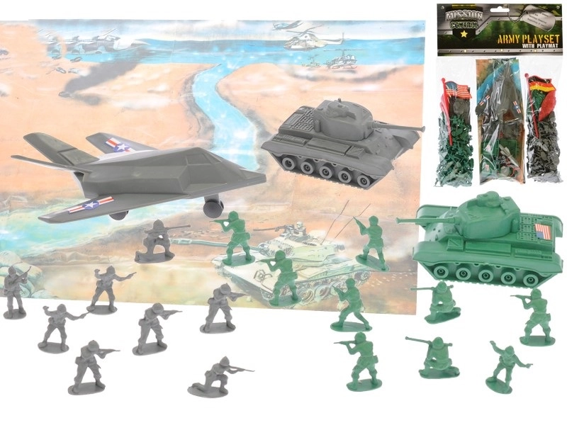 Il set include anche accessori a tema – carri armati, aerei da combattimento e automobili – che rendono il gioco più realistico ed espandono le possibilità ludiche. La pratica bustina dalle dimensioni 22 × 31 × 3,5 cm è ideale per riporre e per i viaggi.