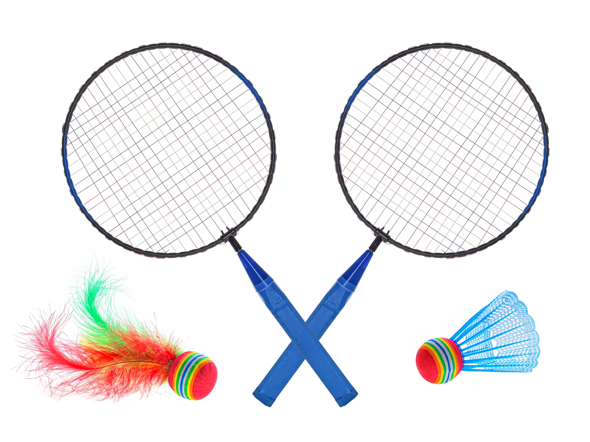 - 2 racchette da badminton, 2 volani (tipi diversi), custodia a rete