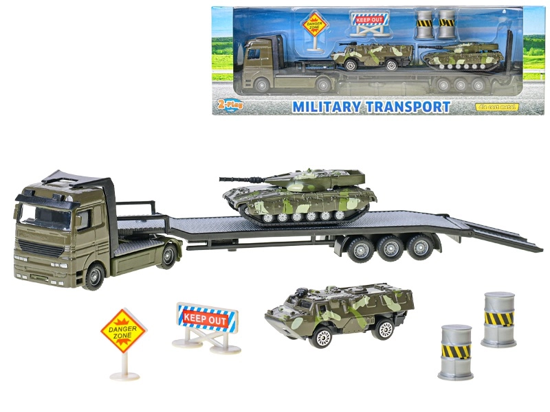 Scopri un set dettagliato per i piccoli appassionati di tecnologia: trasportatore militare lungo 25 cm con meccanismo a spinta libera e due veicoli blindati in scala 1:60. Robusta combinazione di metallo e plastica, dettagli realistici e ricchi accessori (segnali stradali, barriere, barili) che stimolano creatività, pensiero strategico e gioco divertente dai 3 anni in su.