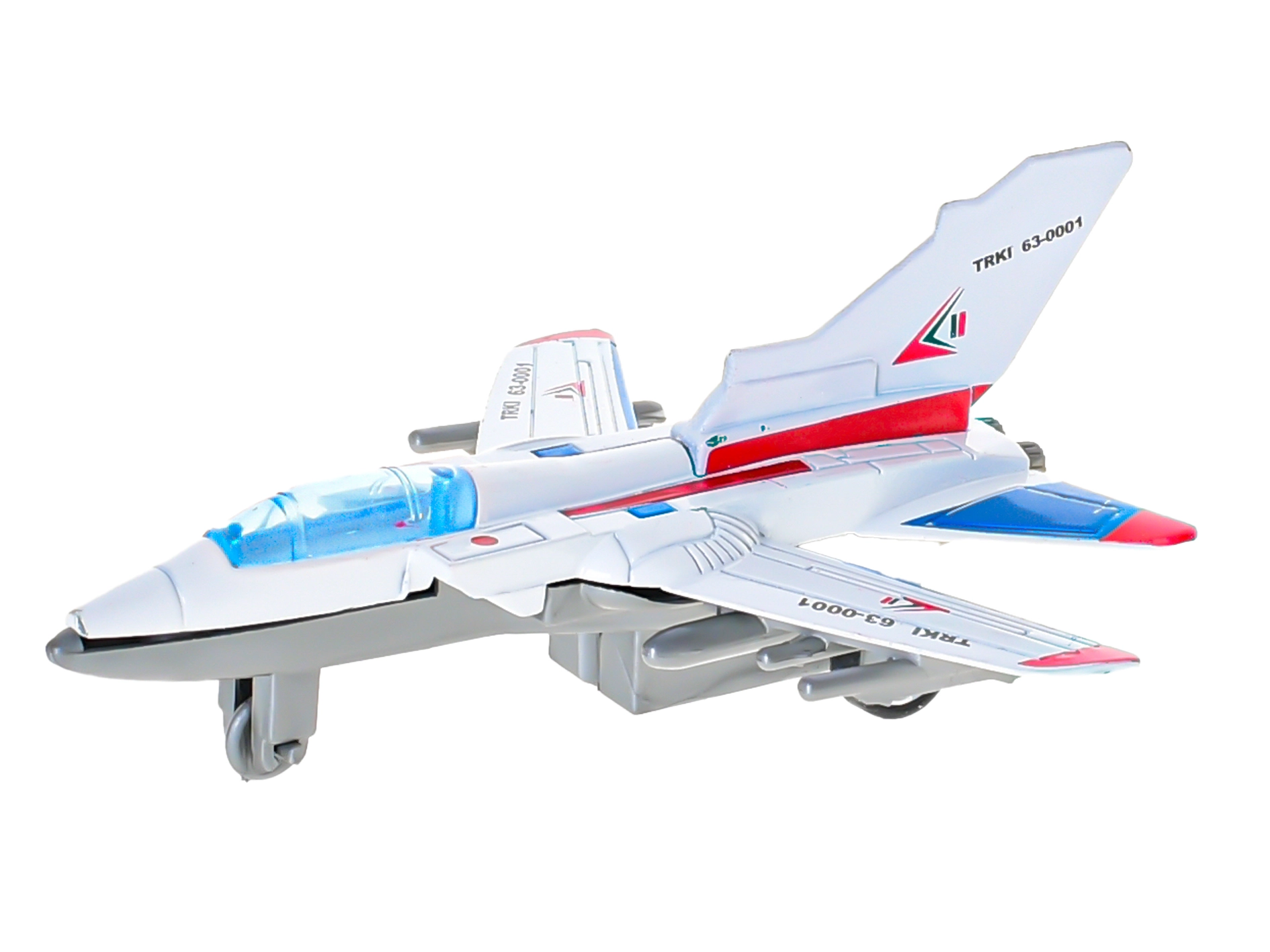 Robusta struttura in metallo con ali, superfici di coda e cockpit dettagliati conferisce all’aereo un aspetto credibile e resistenza durante il gioco.