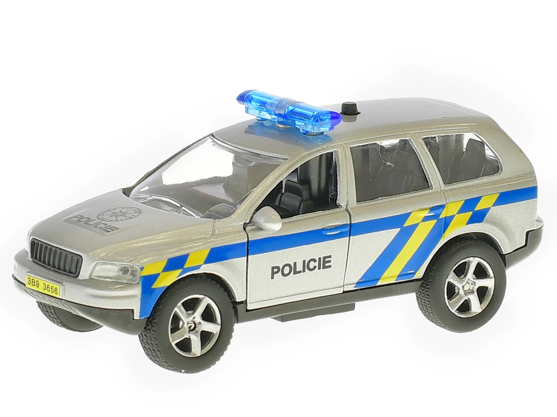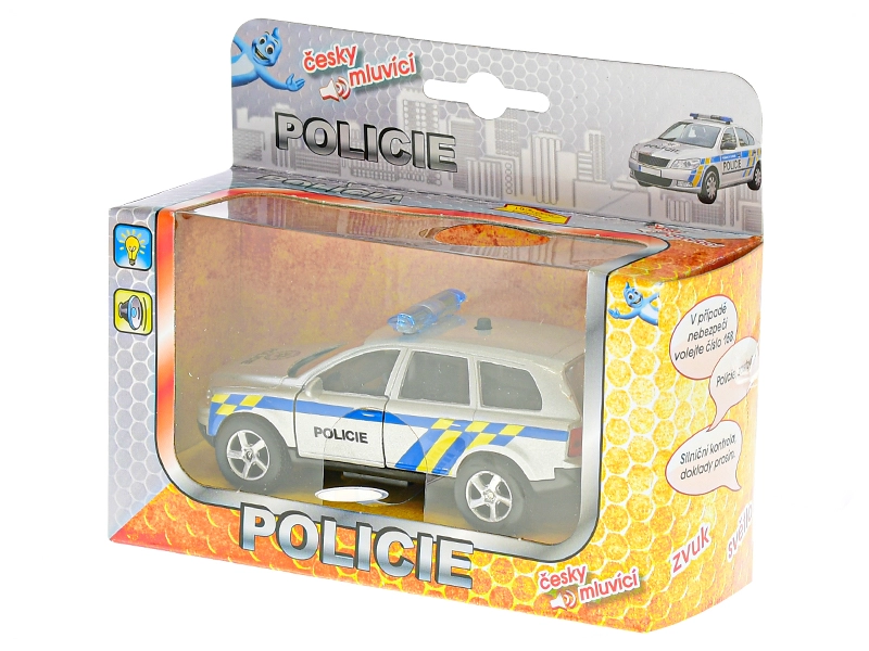 Realistica auto della polizia in metallo lunga 11 cm con sistema a retrocarica (pull back) che parte con una sola trazione. Il modello inoltre parla in ceco e utilizza luci di emergenza, rendendo il gioco ancora più avvincente. Sulla carrozzeria non manca il numero della linea di emergenza 158, che i bambini ricorderanno facilmente.