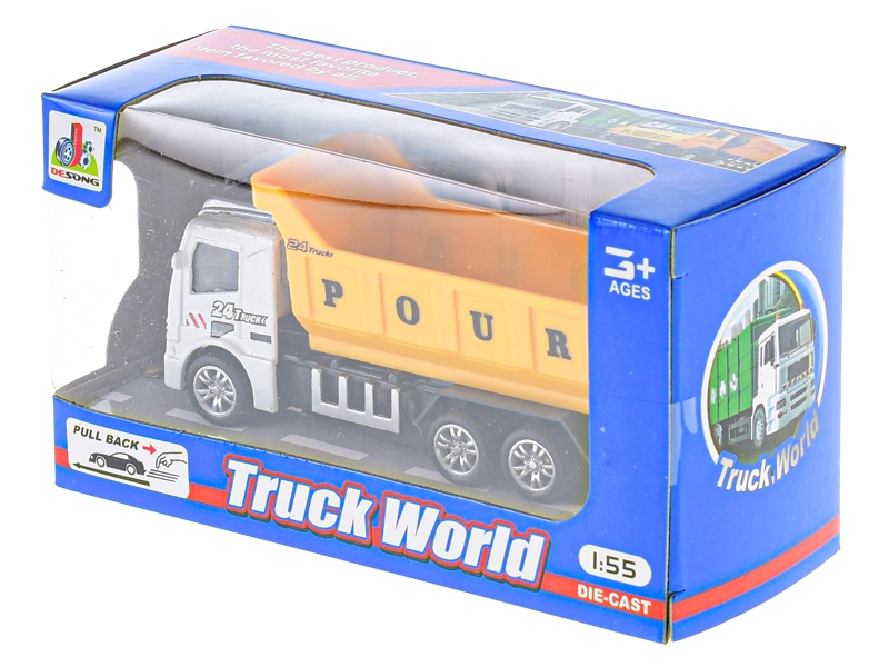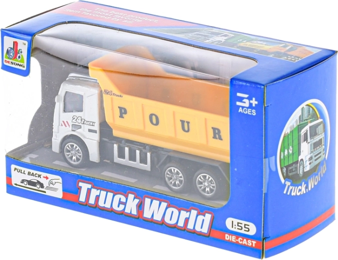 Modello di camion ribaltabile in scala 1:55 con cassone funzionante e marcia autonoma dopo la carica per un gioco ancora più divertente.