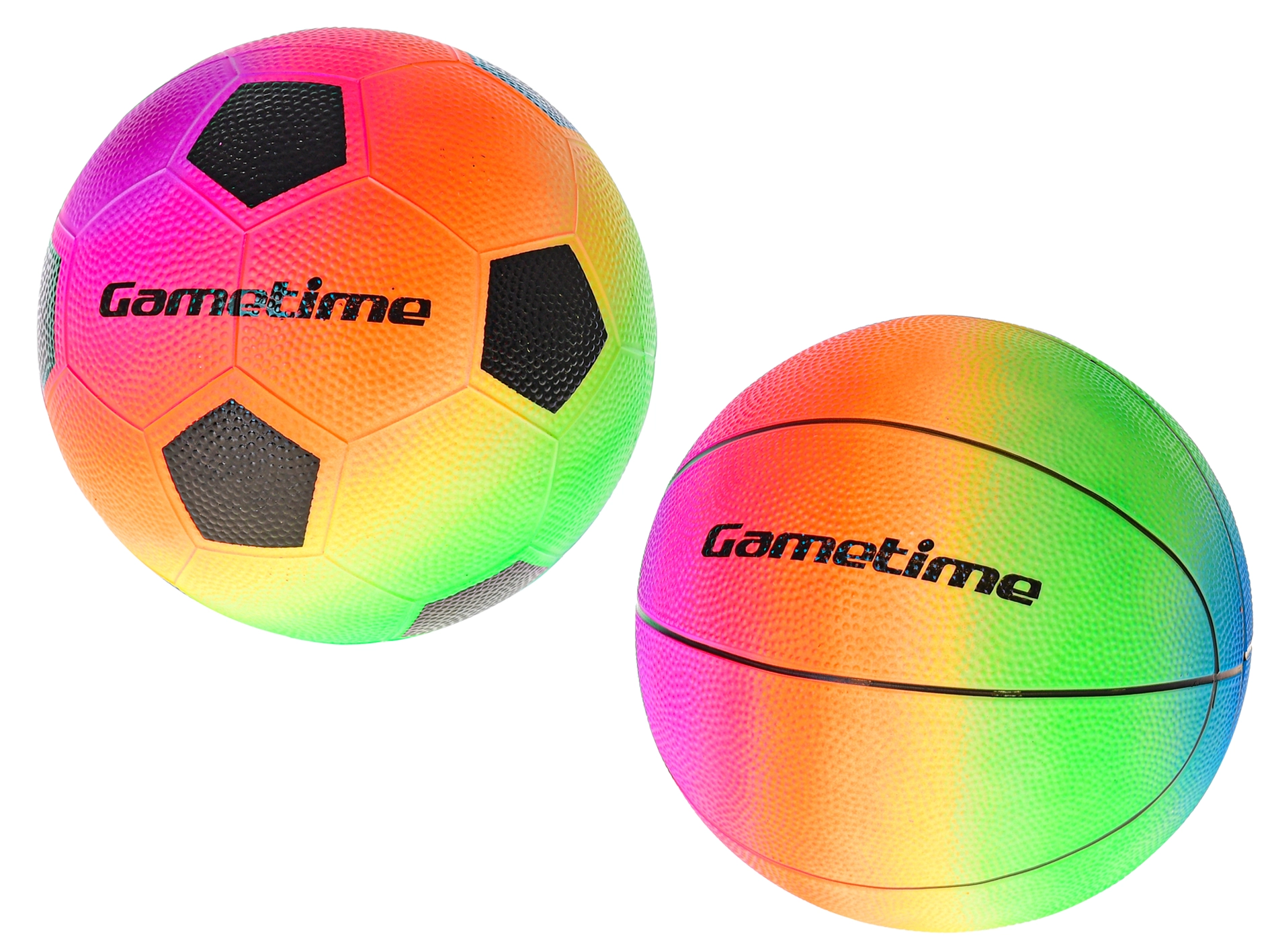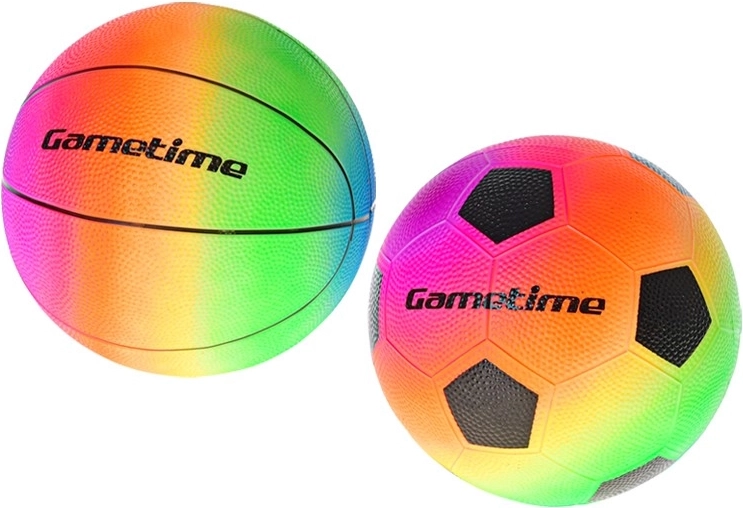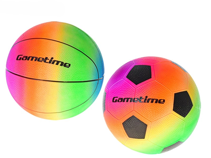 Scegli tra il pallone da basket e quello da calcio in versione arcobaleno – ideali per il gioco ricreativo all’aperto e in acqua.