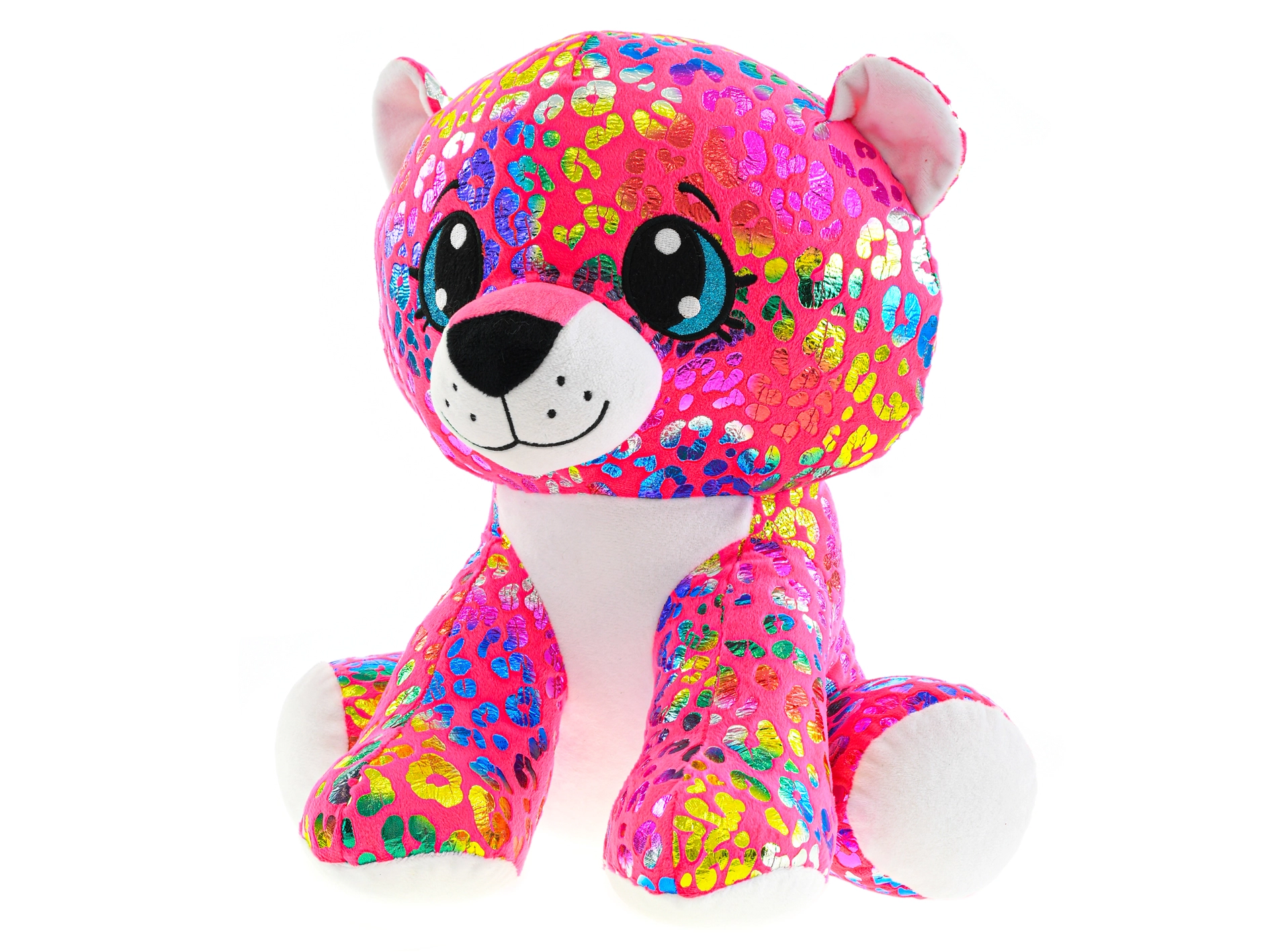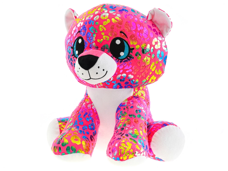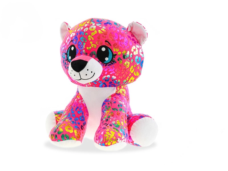 Questo coloratissimo leopardo di peluche è il compagno perfetto per i bambini: è morbido e soffice e grazie alla posizione seduta si tiene facilmente in mano e si espone con facilità. I suoi grandi occhi ricamati, il motivo scintillante e le zampette bianche a contrasto gli donano un’espressione unica che i bambini ameranno all’istante.