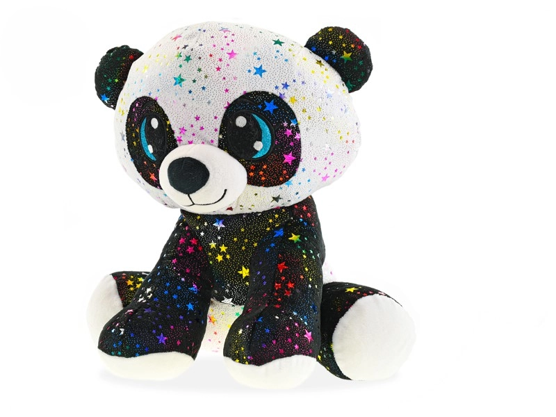 Questo panda di peluche in posizione seduta è progettato per offrire il massimo comfort e il piacere del gioco. La superficie è decorata con stelline multicolore scintillanti, che lo rendono un compagno inconfondibile per la nanna e i viaggi. L’imbottitura morbida e il materiale piacevole assicurano che i bambini vorranno sempre tornare ad abbracciarlo.