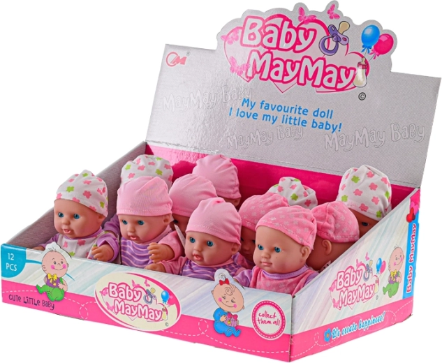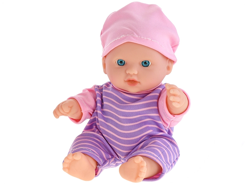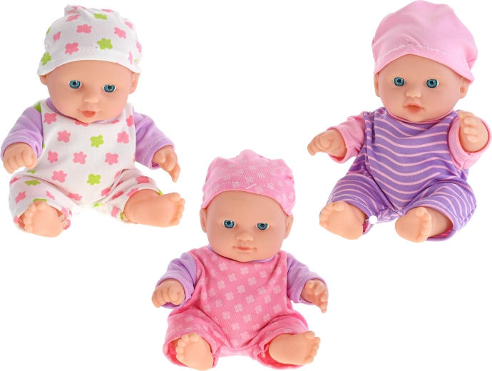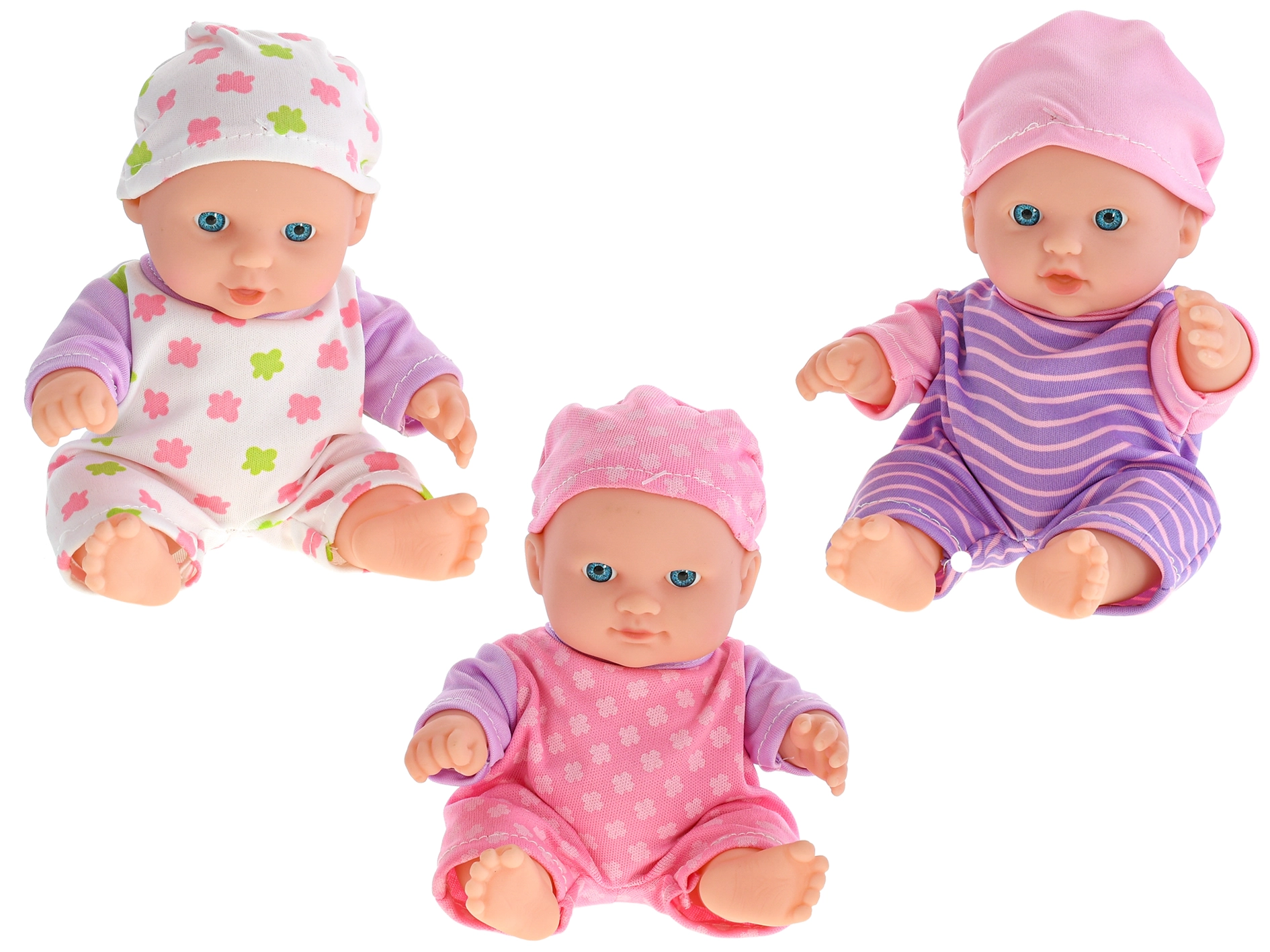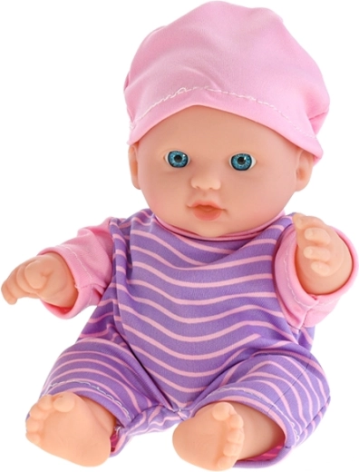 Dolce bambola seduta alta 20 cm, compagna ideale per bambini dai 18 mesi. Ha un corpo in plastica rigida per un'elevata resistenza e facile manutenzione. Grazie alle dimensioni compatte i bambini possono portarla ovunque. Sono disponibili tre varianti di pigiama – a righe, bianco e rosa.