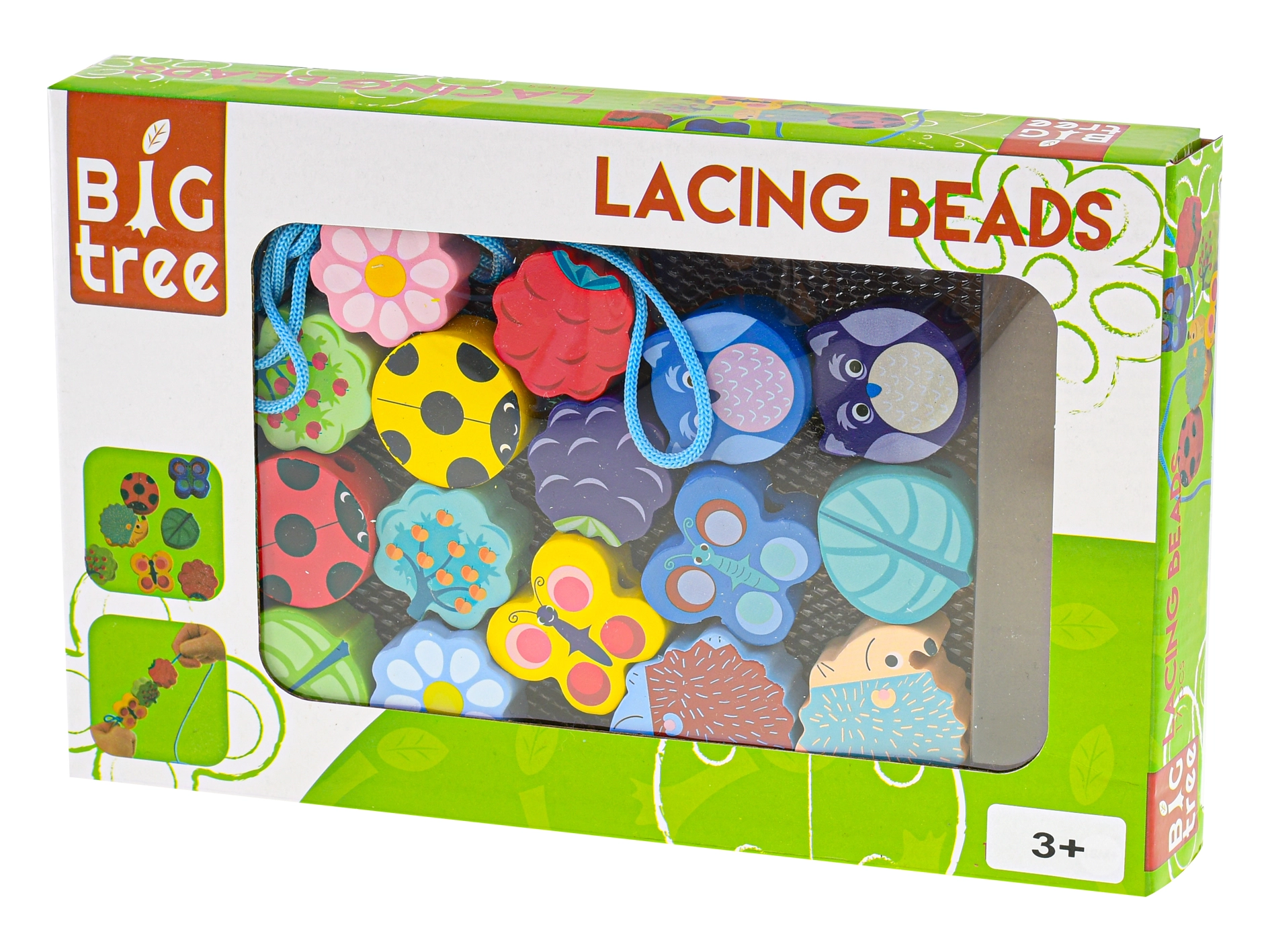 Il set di perline di legno Big Tree è il gioco ideale per i primi lavoretti creativi. I bambini possono infilare liberamente forme e colori vari, sviluppando così pazienza, concentrazione e le basi del ragionamento logico. Il legno di qualità, con superficie liscia e finitura sicura, è piacevole al tatto e resiste all’uso quotidiano.