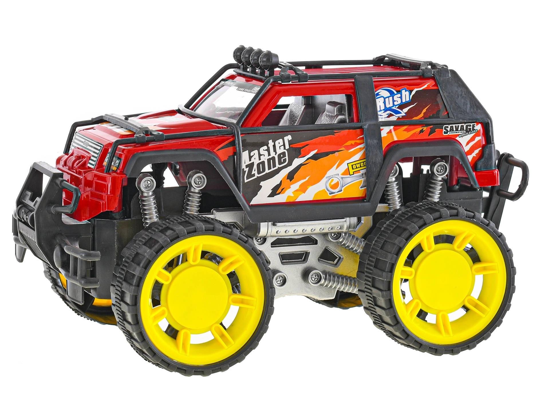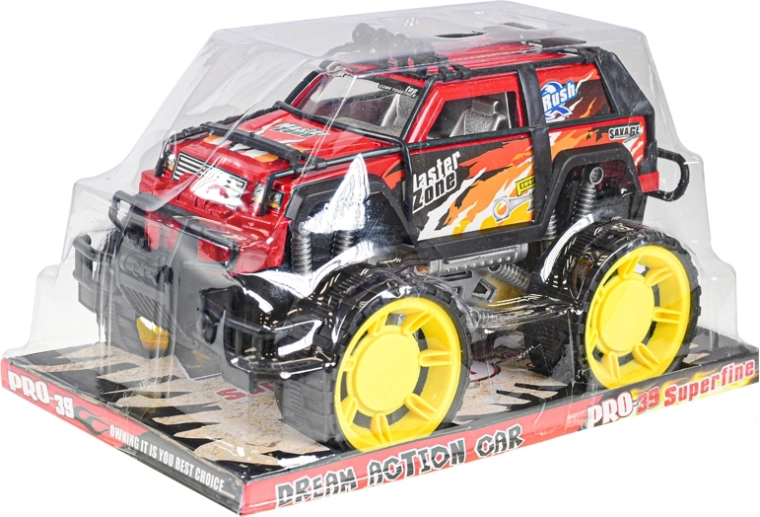 Questo off-road rosso con massicce ruote gialle e telai di protezione è fatto per la guida d’azione. La trazione a retrocarica garantisce un movimento fluido senza bisogno di batterie: basta spingere e partire. Materiali resistenti e dettagli studiati, come “ammortizzatori” e paraurti, offrono lunga durata e gioco sicuro.