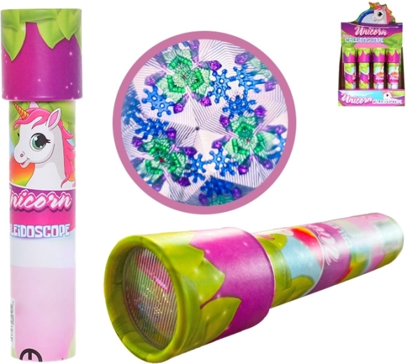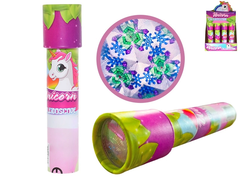 Scopri la magia della fantasia con questo adorabile caleidoscopio a tema unicorno. Basta guardare attraverso l’obiettivo e ruotare il tubo: davanti agli occhi appariranno motivi colorati in continua trasformazione. Grazie alle dimensioni compatte e alla robusta struttura in plastica, è facile da impugnare anche dalle mani dei più piccoli. Adatto ai bambini dai 3 anni, disponibile in quattro varianti di colore.