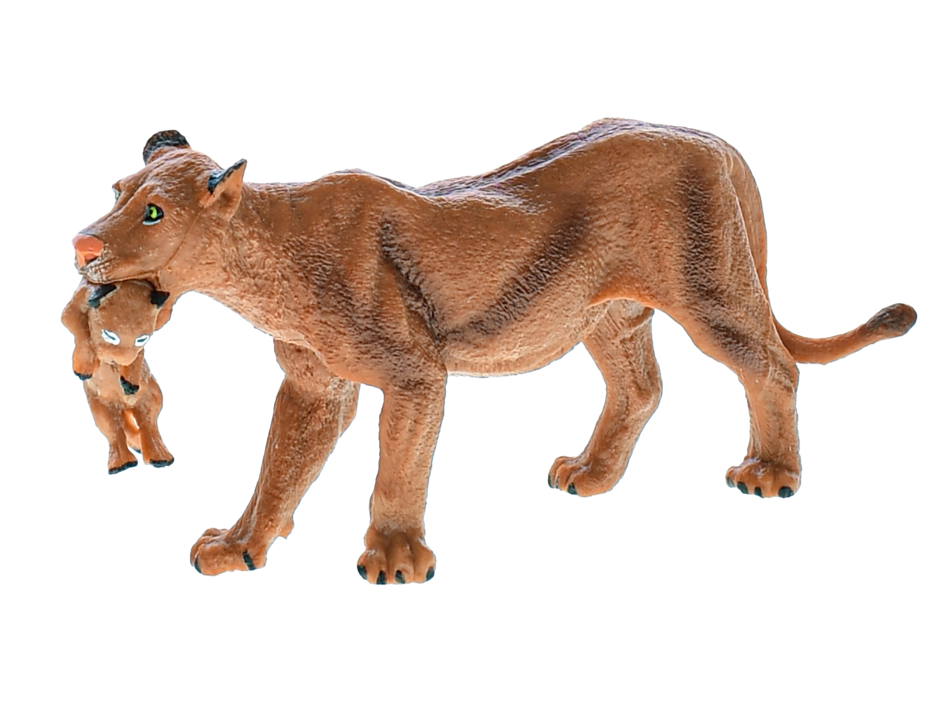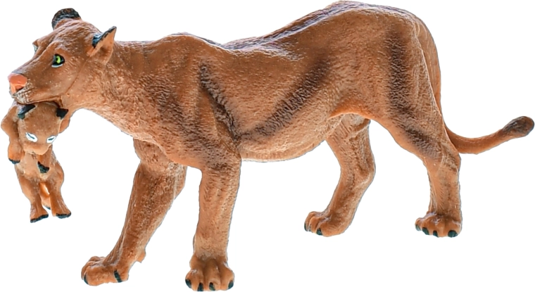 La figura misura 13 cm ed è confezionata in una pratica scatola dalle dimensioni di 16 × 9,5 × 11 cm, facile da riporre e da regalare. È possibile scegliere tra le varianti leone o leonessa con cucciolo, che completeranno perfettamente la collezione di animali dei bambini.
