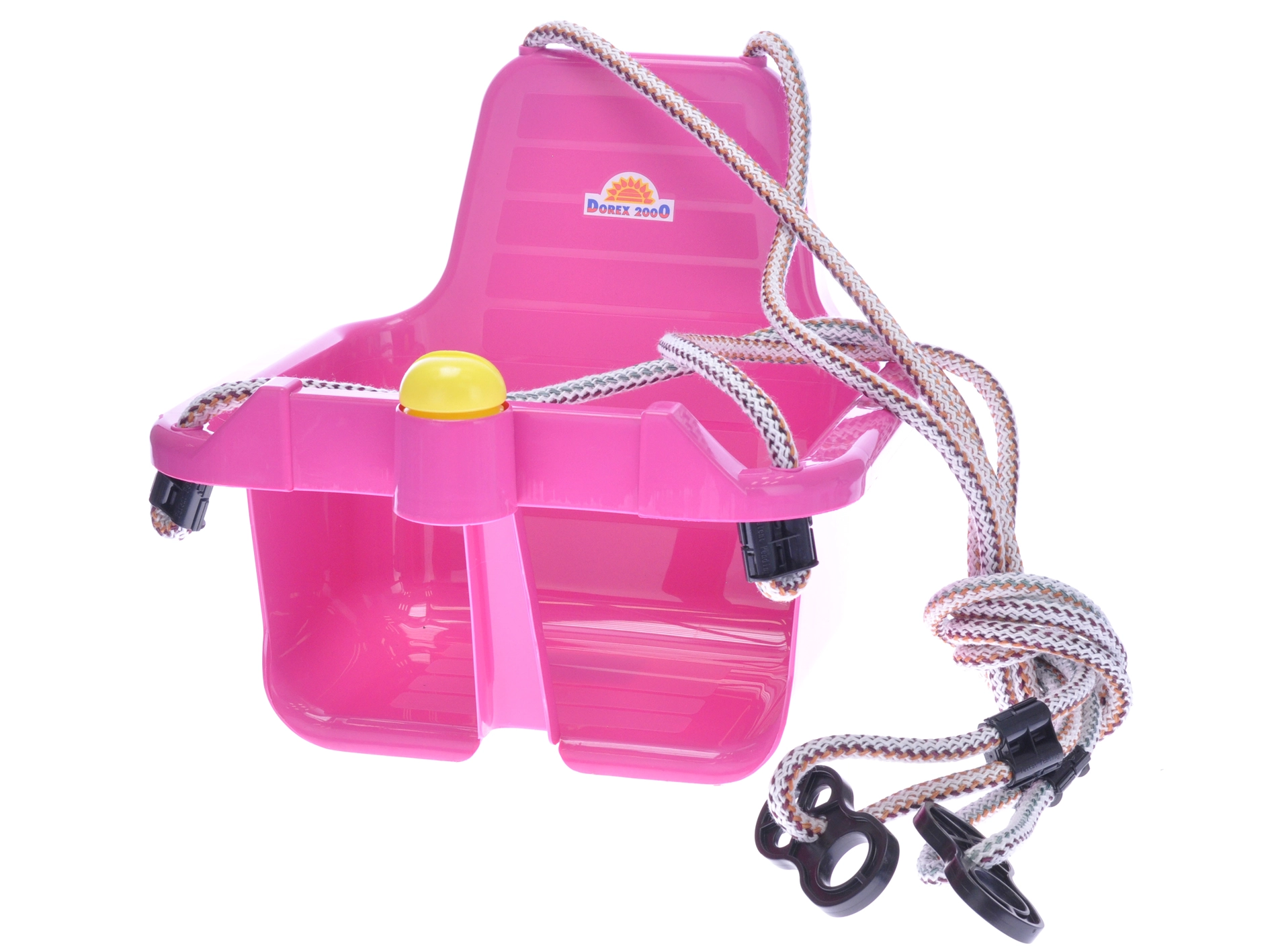 Questa graziosa altalena rosa è un'ottima scelta per i primi dondolii. Grazie alla protezione anteriore robusta garantisce stabilità e sicurezza, mentre il clacson integrato aggiunge un elemento di gioco a ogni oscillazione.