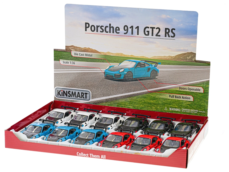 Modello in metallo del veicolo PORSCHE 911 GT2 RS in scala 1:36 del marchio Kinsmart, realizzato con grande precisione, che entusiasmerà bambini e collezionisti. Offre finiture dettagliate, porte laterali apribili e un divertente meccanismo a retrocarica per avanzare. Grazie alla combinazione di metallo e plastica, il modello è resistente e leggero, lungo 12,5 cm e adatto ai bambini a partire da 3 anni.