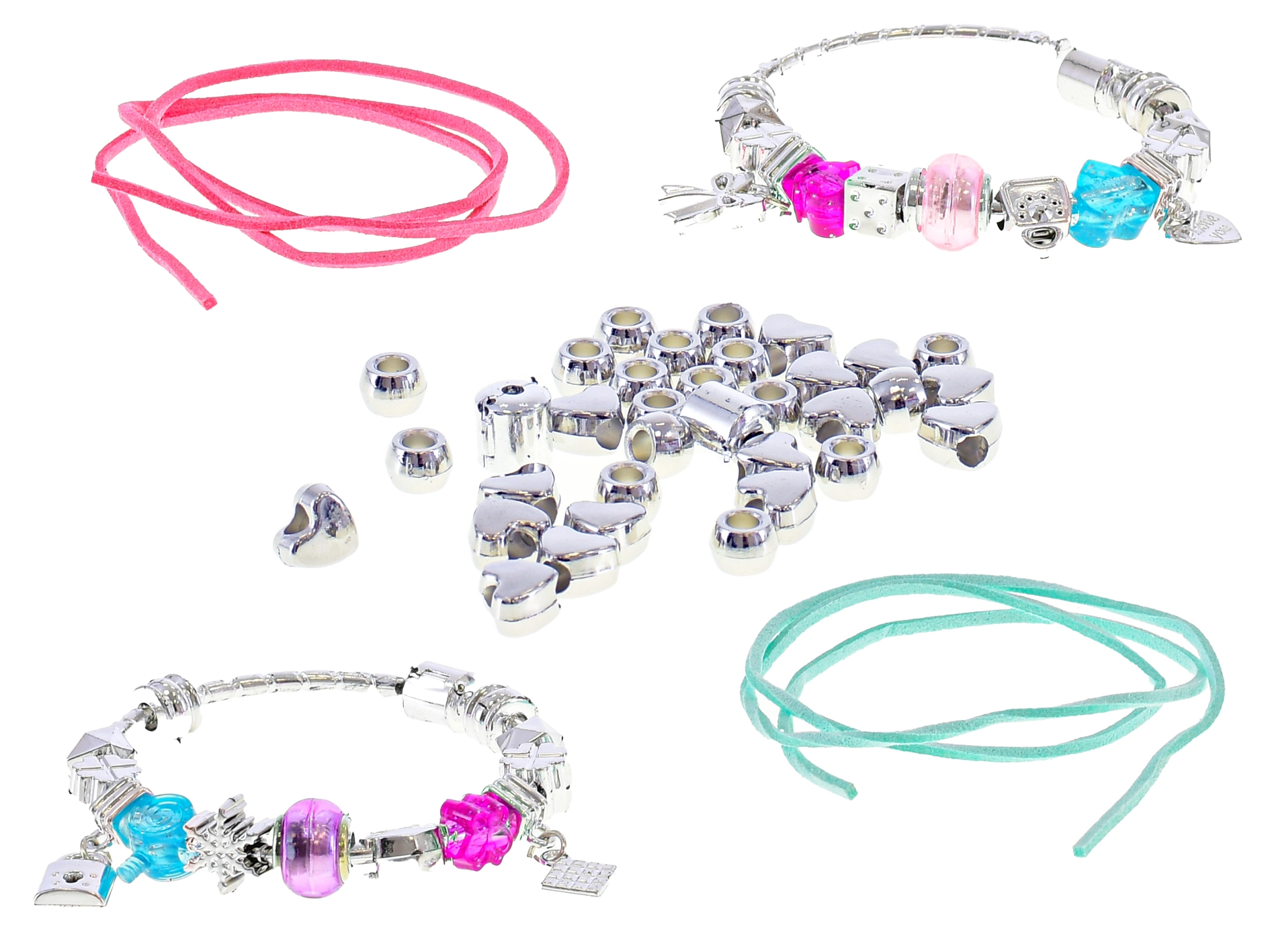 Componenti organizzati in modo chiaro – perline, ciondoli e cordini – per creare facilmente e velocemente senza dover cercare altri accessori.