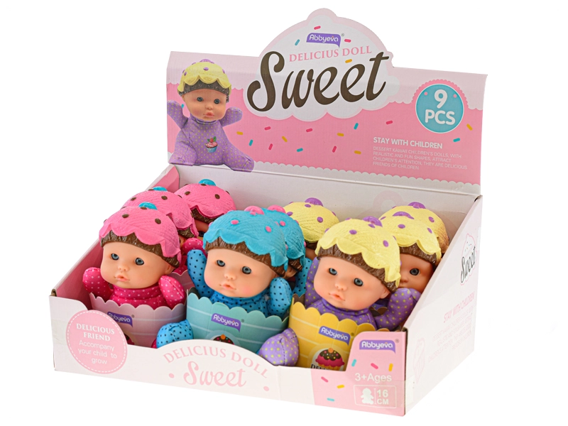 Questa piccola bambolina in un tenero cestino farà felice ogni bambino. Grazie al corpicino morbido e piacevole è perfetta per le coccole, mentre la testina e le manine realistiche in plastica favoriscono il gioco di ruolo e la cura del bebè. Le colorate cuffiette a cupcake e i vestitini a pois donano alla bambolina un fascino unico e incantevole.