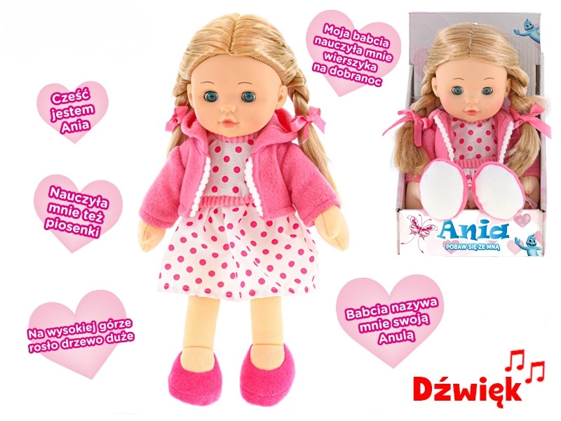 La bambola Ania è pensata per i più piccoli, che apprezzeranno il suo corpicino piacevolmente morbido e i dettagli realistici. Grazie alle frasi e ai suoni in lingua polacca sostiene in modo ludico lo sviluppo della percezione linguistica e delle abilità sociali. Gli occhi che sbattono e l’abbigliamento alla moda intensificano l’esperienza di gioco realistica.