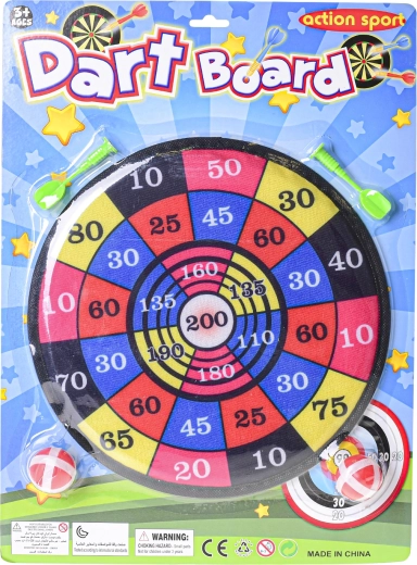 - 1× bersaglio, 2× pallina con velcro, 2× freccetta con velcro
