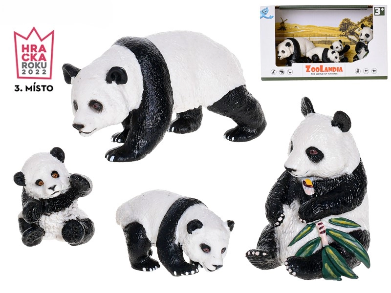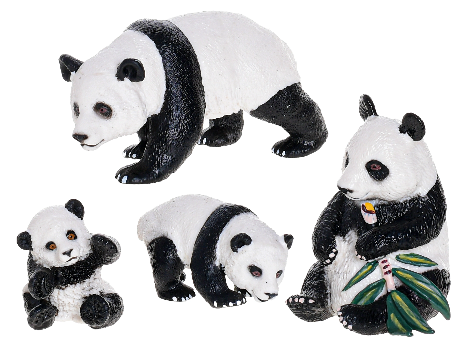 • Famiglia completa di panda – maschio, femmina e cuccioli.