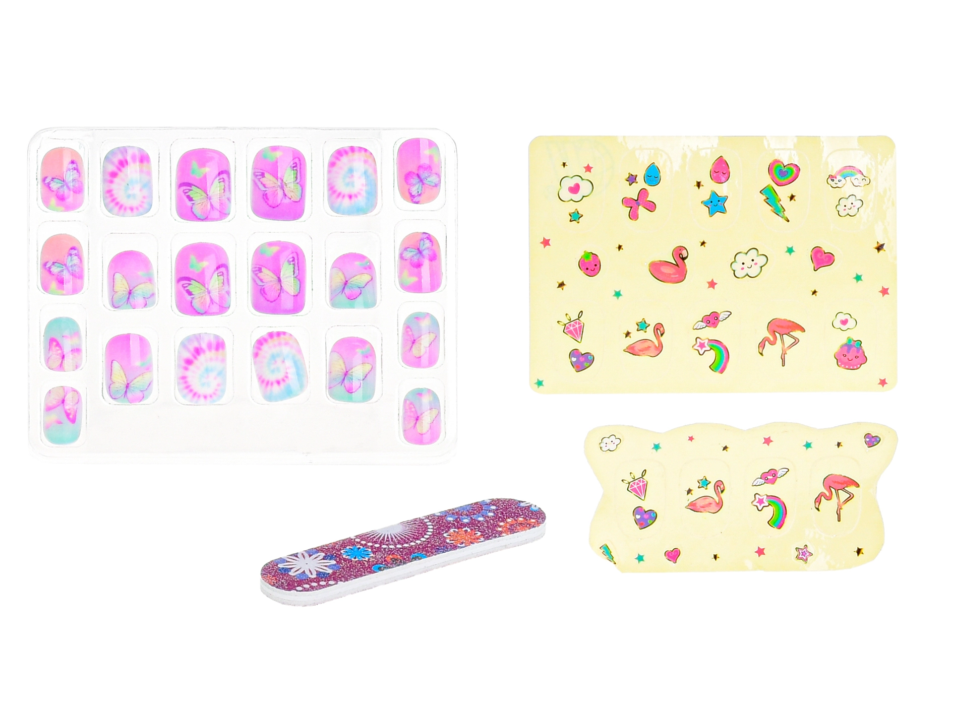 Regala ai bambini il divertimento di una vera manicure: questo set di unghie adesive per bambini offre applicazione facile senza colla, 20 unghie colorate, eleganti adesivi e una pratica limetta. Ideale per piccole fashioniste dai 5 anni che desiderano sviluppare creatività, motricità fine e senso estetico.