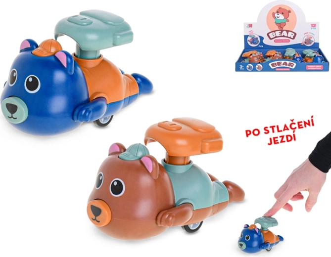 Questo simpatico orsacchiotto è il giocattolo ideale per sviluppare la motricità fine e la coordinazione. Basta premerlo dall’alto e partirà con gioia in avanti. Grazie al semplice principio meccanico non sono necessarie batterie, così i bambini possono giocare ovunque e in qualsiasi momento.