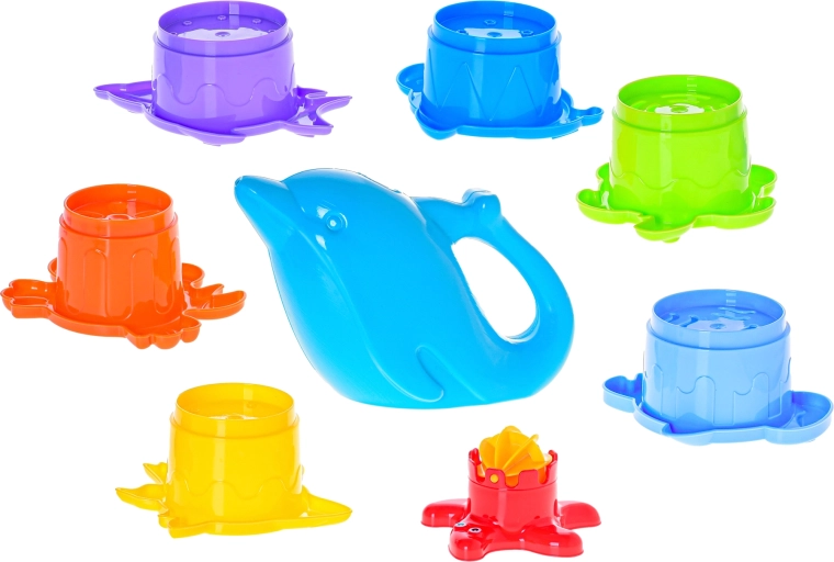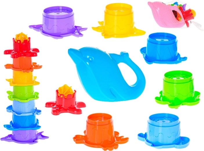 Questo set colorato entusiasmerà i piccoli esploratori del mondo di sabbia e acqua. La piramide stabile con simpatici motivi marini ha 7 piani impilabili che permettono di versare sabbia o acqua e osservare come scorrono e ruotano. Include anche un grazioso annaffiatoio a forma di delfino, che rende ancora più divertente bagnare le formine o far girare le turbine.
