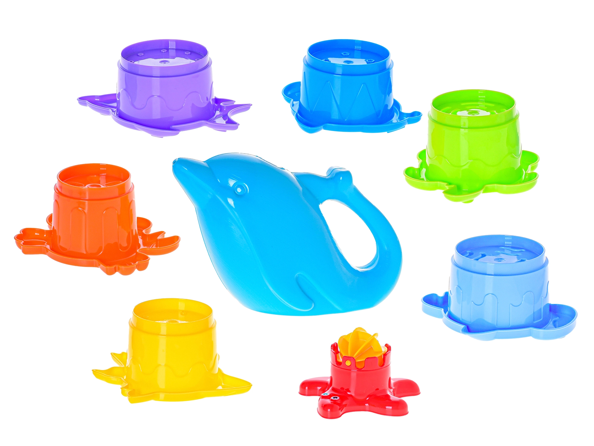 Il grazioso annaffiatoio a forma di delfino facilita l’innaffiatura delle formine, il movimento della turbina e gli esperimenti d’acqua in vasca.