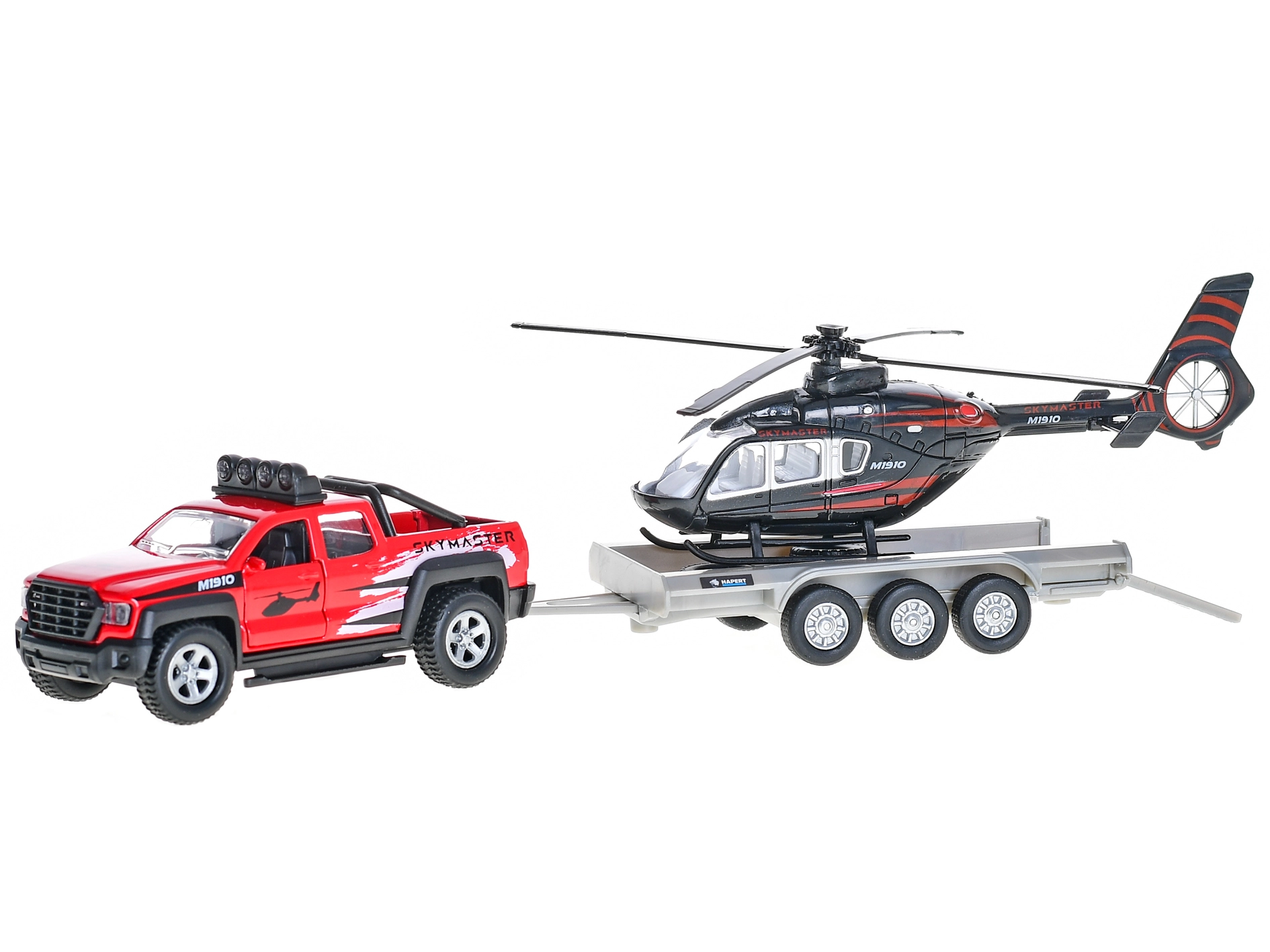 Questo set dettagliato di Kids Globe Traffic offre ai bambini avventure realistiche sulla terra e in aria. L'auto fuoristrada lunga 13 cm, grazie al meccanismo a retrocarica, parte da sola dopo essere stata tirata indietro, mentre il rimorchio trasporta in sicurezza l'elicottero lungo 20 cm. La combinazione di metallo e plastica garantisce resistenza e un aspetto autentico.