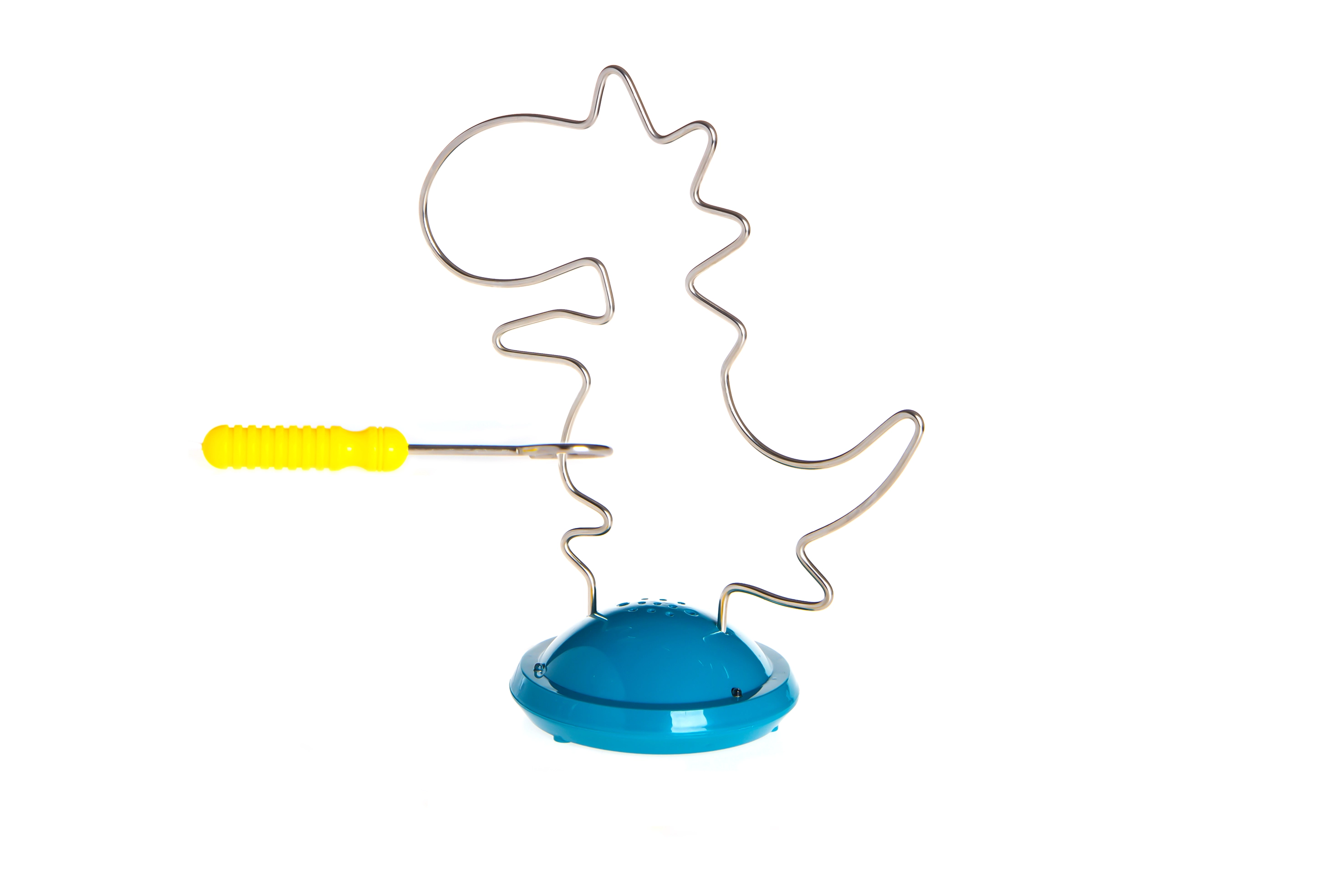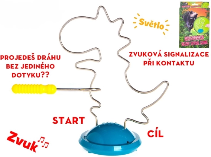 Rompicapo interattivo a forma di dinosauro che unisce divertimento e apprendimento: l'obiettivo è guidare un anello metallico lungo il percorso senza toccarlo. Al contatto si attiva una segnalazione sonora, che motiva a una maggiore precisione. Il gioco favorisce la coordinazione mano-occhio, sviluppa la motricità fine e, grazie agli effetti luminosi e sonori, invoglia i bambini a giocare ripetutamente. Struttura resistente in plastica e metallo, adatta ai bambini dai 3 anni.