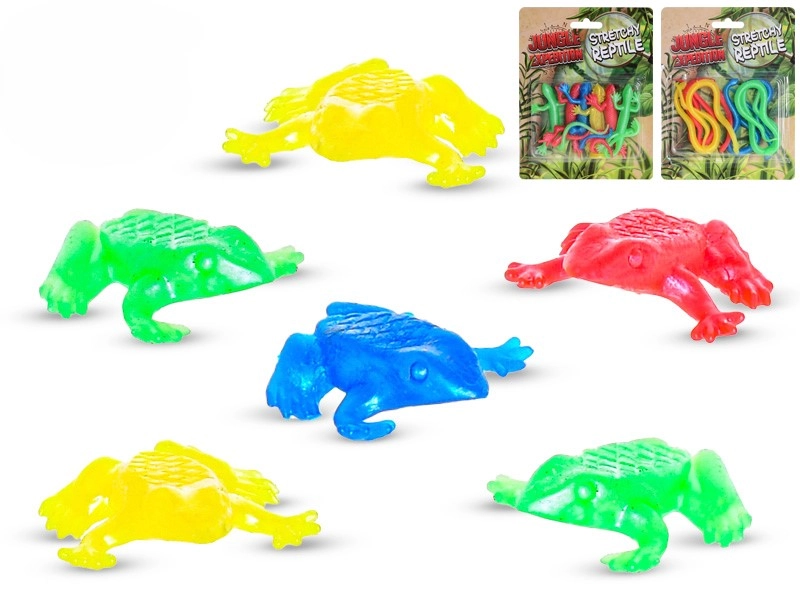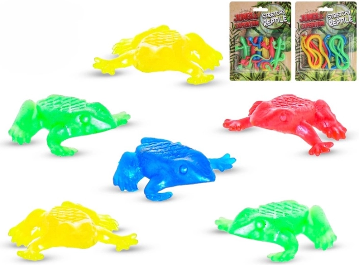 Scopri il divertimento con la collezione di rettili elastici Jungle Expedition – serpenti, rane e lucertole in materiale flessibile e sicuro. I bambini dai 3 anni potranno divertirsi con un gioco interattivo, allungando, piegando le figurine e creando le proprie storie. Il formato compatto facilita il trasporto e la conservazione. Materiale elastico, realismo dettagliato, dimensioni varie e resistenza per un gioco frequente rendono questo set un ottimo complemento al mondo di fantasia dei bambini.