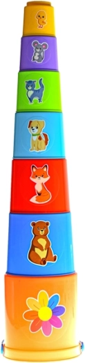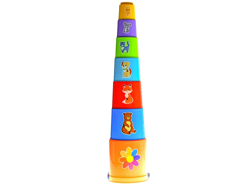 Il set comprende diversi bicchierini leggeri e colorati che si possono facilmente impilare, inserire uno dentro l’altro o usare nel gioco libero. Grazie ai colori vivaci e alla forma semplice, i bambini sviluppano naturalmente la percezione visiva, la pazienza e la rappresentazione spaziale.
