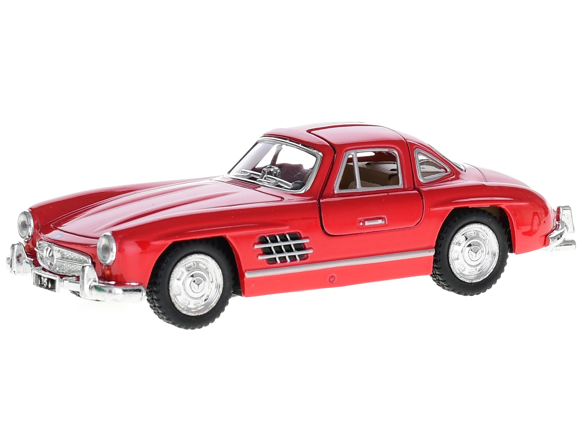 Il modello in metallo della Mercedes‑Benz 300 SL del 1954 riproduce fedelmente il design iconico con le tipiche portiere “gullwing”. Grazie alla lavorazione dettagliata e ai materiali di qualità, appare realistico e al tempo stesso resistente. Il pratico meccanismo a retrocarica garantisce divertimento e movimento dinamico dopo averlo tirato all'indietro.