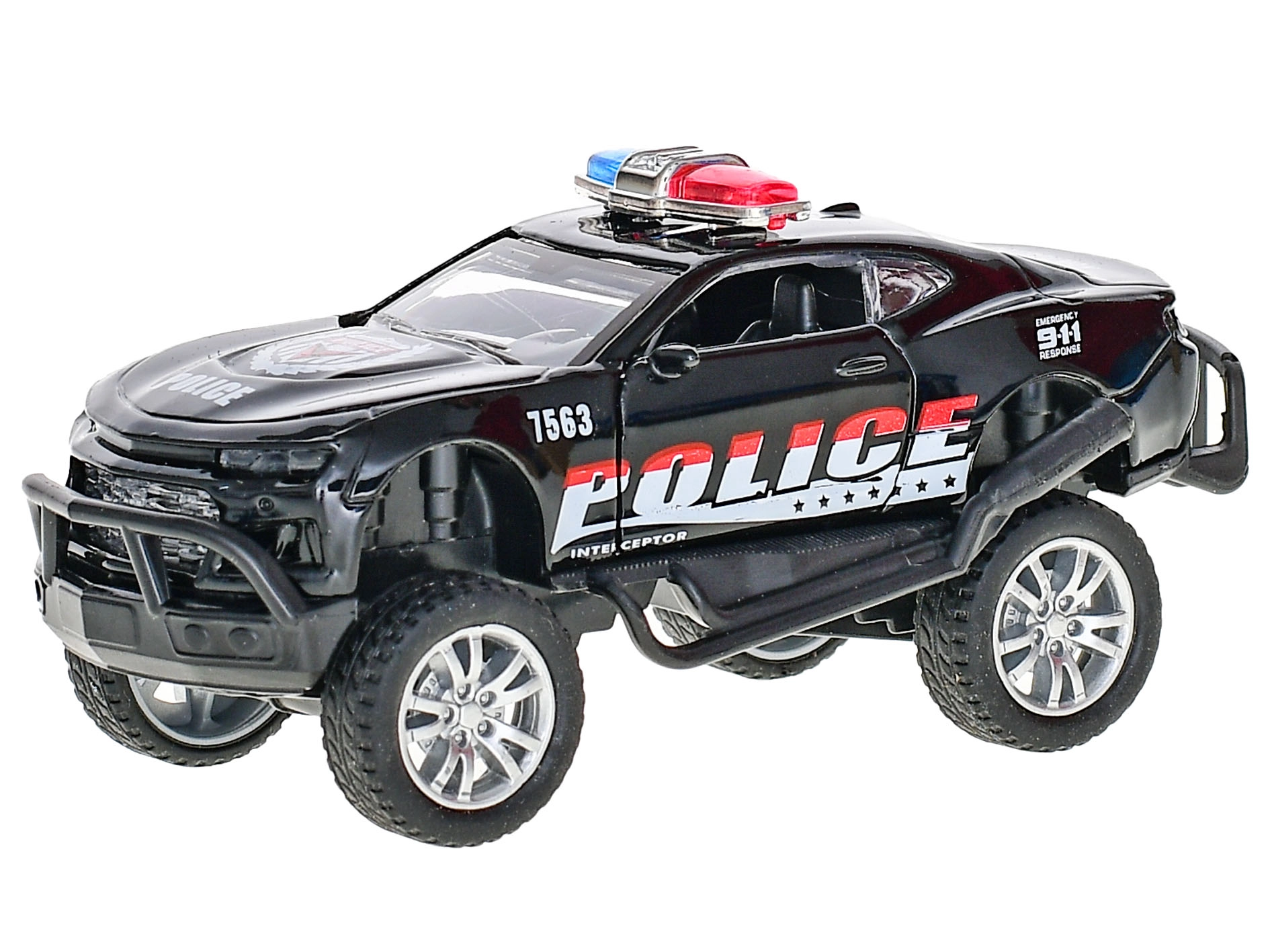 Compatta auto della polizia in metallo lunga 13 cm che farà felici tutti i piccoli fan dei veicoli d’emergenza. Grazie alla retrocarica parte in avanti quando viene rilasciata, offrendo ancora più divertimento durante il gioco. La resistente combinazione di metallo e plastica garantisce una lunga durata; due varianti di colore (bianco, nero) permettono di scegliere secondo i gusti. Adatta dai 3 anni, confezionata in scatola – perfetta anche come regalo.