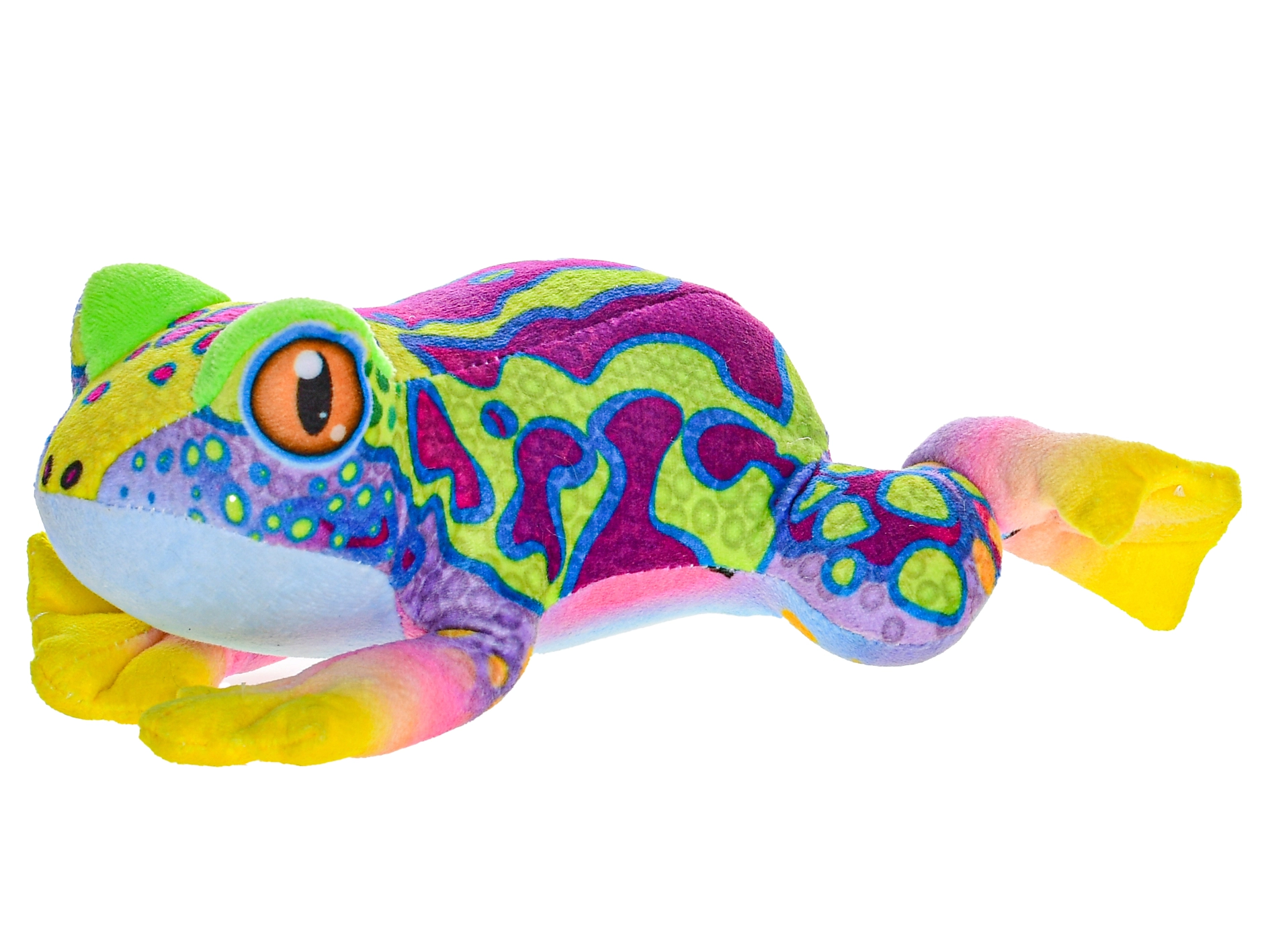 Adorabile ranocchia di peluche da 20 cm in materiale morbido e vellutato, perfetta per i più piccoli fin dalla nascita. Offre effetti sonori di gracidio, funziona con 3× batterie AG13 (incluse) ed è disponibile in quattro varianti di colore – rosso, viola, giallo e verde. Giocattolo ideale per lo sviluppo sensoriale e per le coccole di ogni giorno.