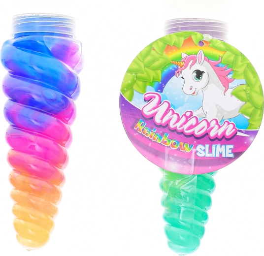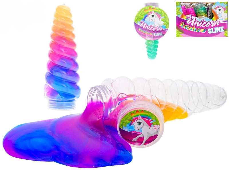 Scopri magia e divertimento con il Corno di unicorno con slime arcobaleno! Il corno trasparente lungo 13,5 cm è riempito con 115 g di slime morbido e multicolore, ideale per schiacciare, allungare e modellare. Sviluppa al meglio la motricità fine e la percezione sensoriale dei bambini. Adatto dai 3 anni, disponibile in diverse combinazioni di colori.