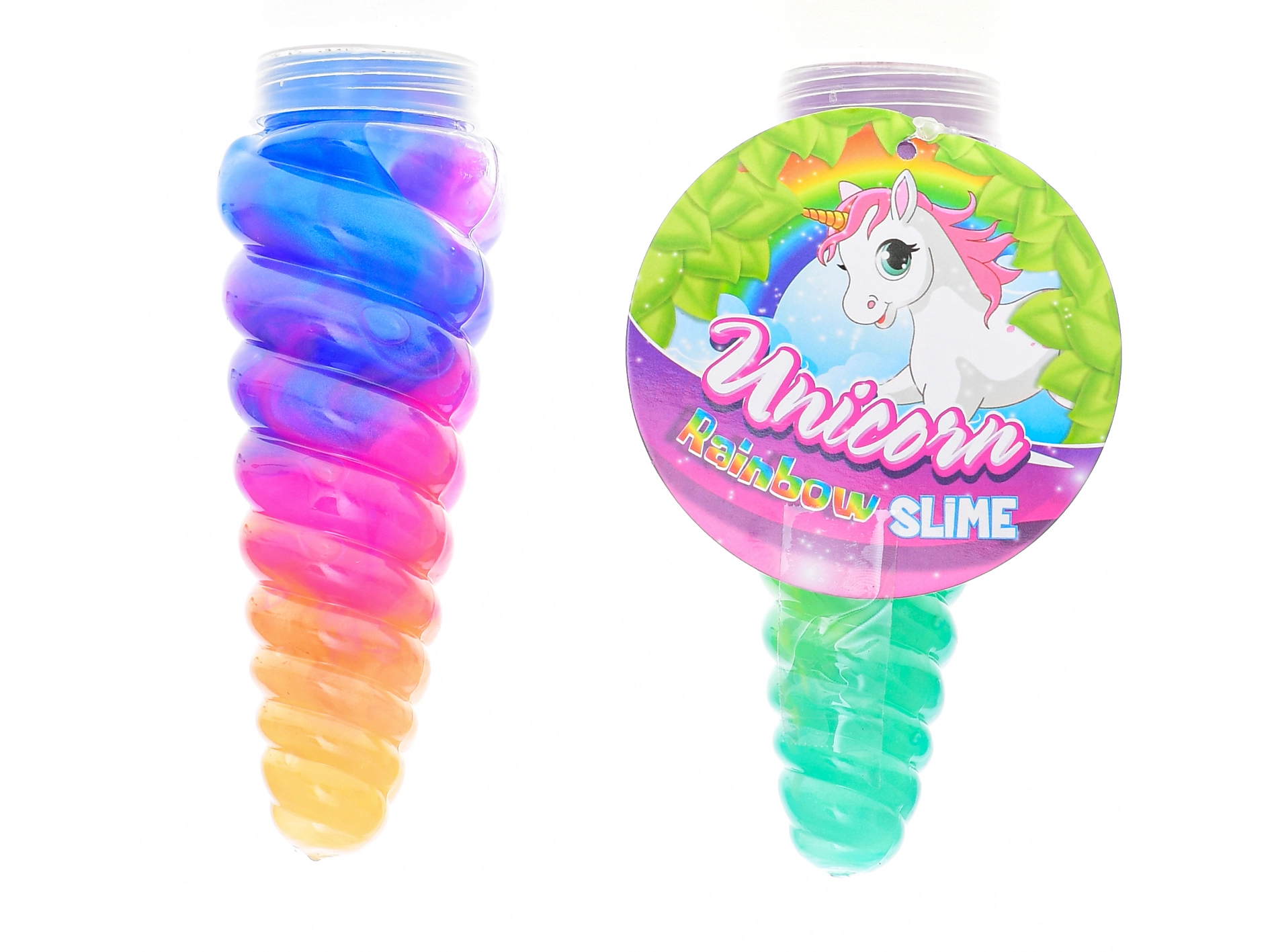 Il Corno di unicorno con slime arcobaleno porta ai bambini una magica dose di creatività e relax. Lo slime colorato, soffice ed elastico nel corno trasparente invita a essere schiacciato, allungato e modellato. Grazie al design accattivante e ai colori vivaci è ideale per tutti i piccoli amanti della fantasia e degli unicorni.