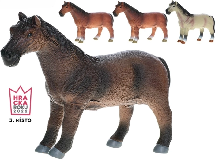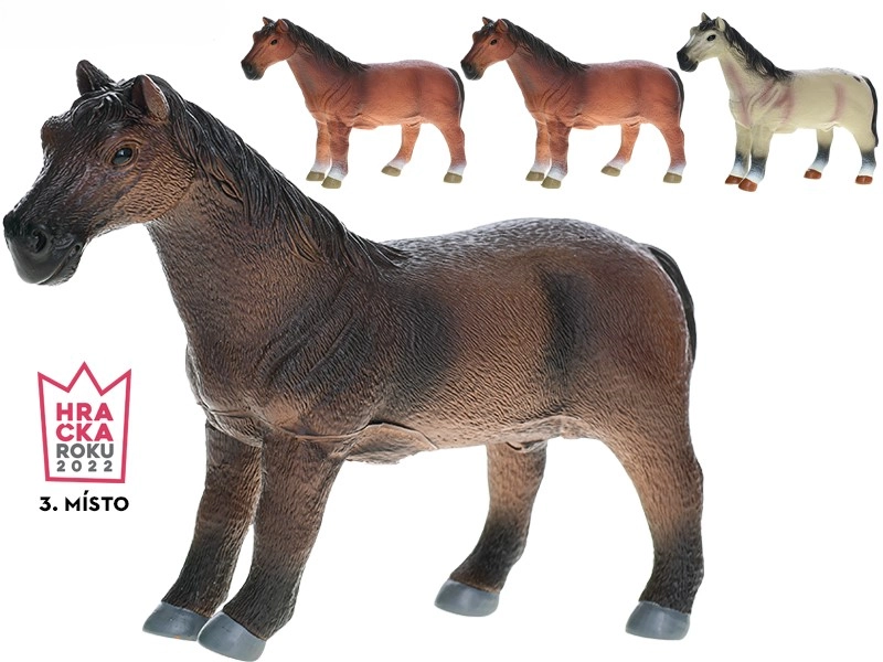 La figurina è disponibile in quattro eleganti colori – marrone scuro, marrone medio, marrone chiaro e grigio – così i bambini possono scegliere il loro preferito o comporre un’intera scuderia. La dimensione di 26 cm garantisce una presa comoda e una resistenza sufficiente per il gioco frequente a casa e in viaggio.