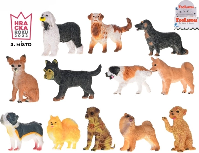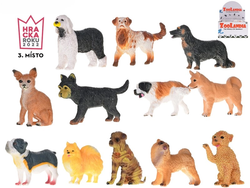 Disponibili in 12 razze: chihuahua, san bernardo, corgi, bulldog francese, bassotto, mastino, barbet, chow-chow, retriever, terrier, pomeranian e komondor. Grazie alle dimensioni compatte di 5–9 cm, le figurine si tengono comodamente nelle piccole mani dei bambini e si ripongono facilmente, poiché sono confezionate singolarmente in bustina.
