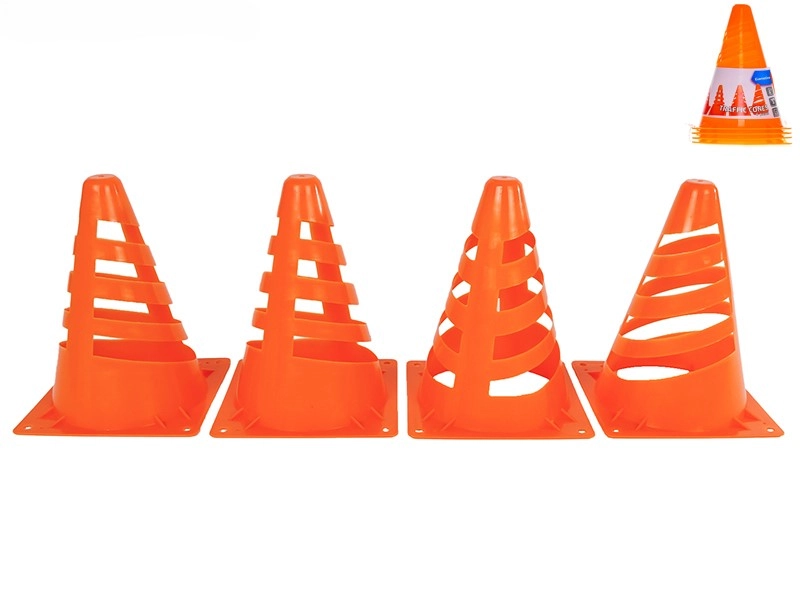 I coni misurano 13 × 13 × 18 cm e sono dotati di fori di montaggio per un rapido fissaggio o collegamento con aste e altri elementi di allenamento. Adatti ai bambini dai 5 anni, sono utili nei giochi didattici che sviluppano coordinazione, velocità e abilità motorie.
