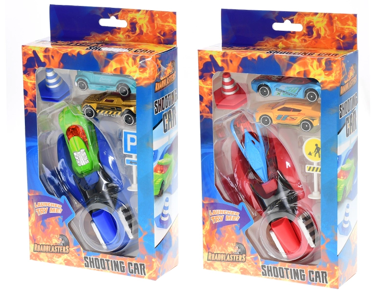 Il set ROADBLASTERS porta gare adrenaliniche direttamente nella cameretta. I bambini scelgono il colore preferito della macchinina (rossa o blu), preparano i segnali stradali e con una sola pressione del lanciatore spingono le auto in avanti. Velocità e scenari di gioco realistici garantiscono ore di divertimento.