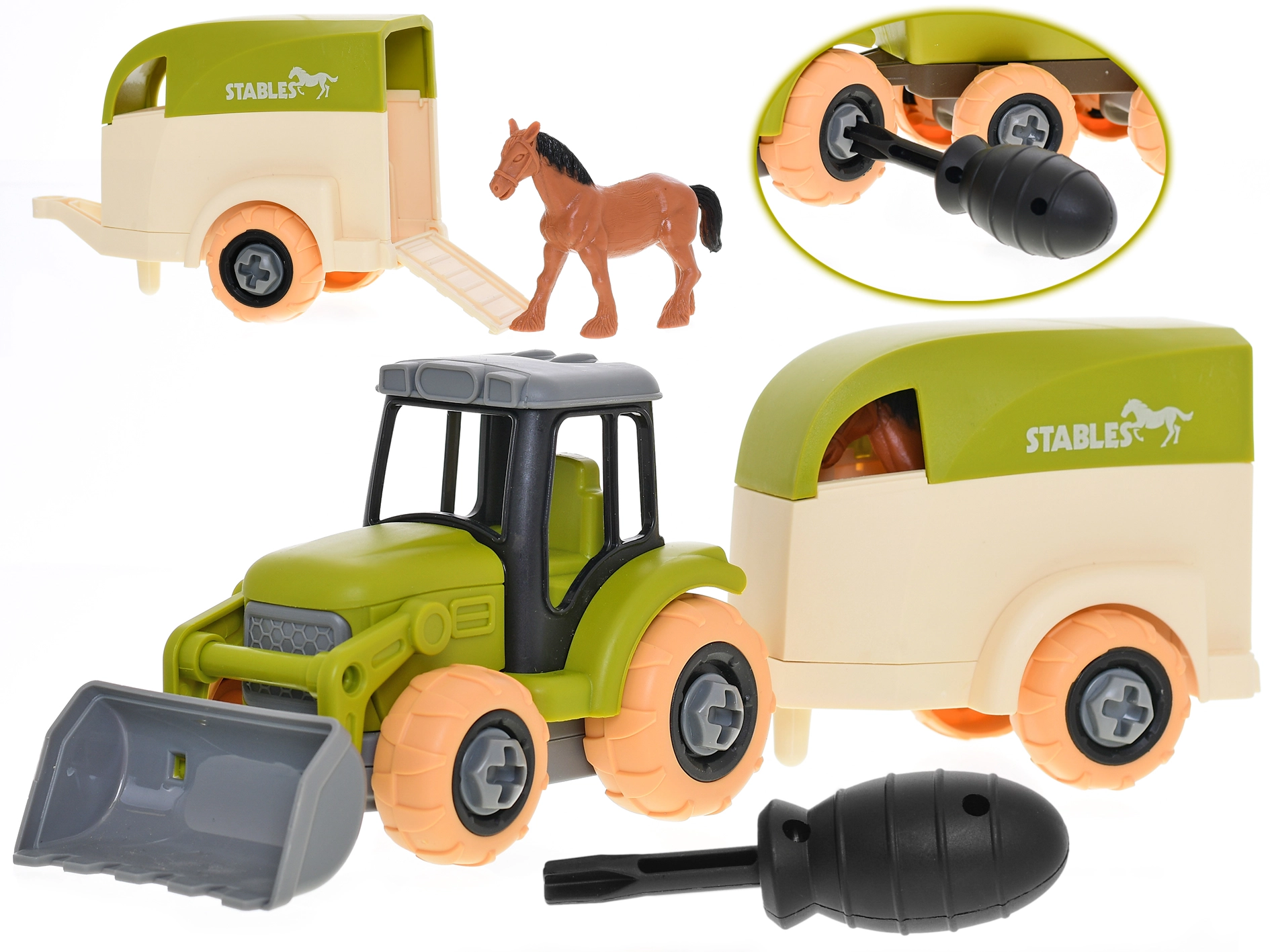Cercate un giocattolo creativo che diverta e allo stesso tempo sviluppi abilità? Questo trattore avvitabile in plastica resistente permette ai bambini di calarsi nel ruolo di agricoltore e di apprendere i principi base dell’assemblaggio. Grazie agli accessori, inclusi rimorchio e figurina del cavallo, possono creare scenari agricoli realistici.